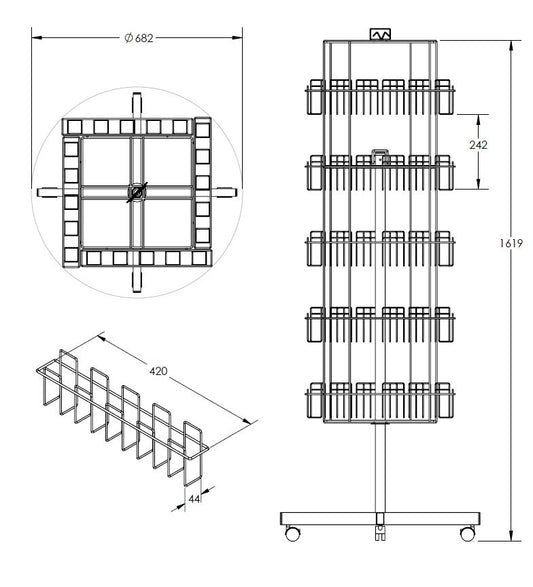 - Space-Efficient Design: From high-capacity floor units with lockable castors to compact countertop browsers for checkout zones, our stands minimize floor footprint while maximizing SKU capacity.