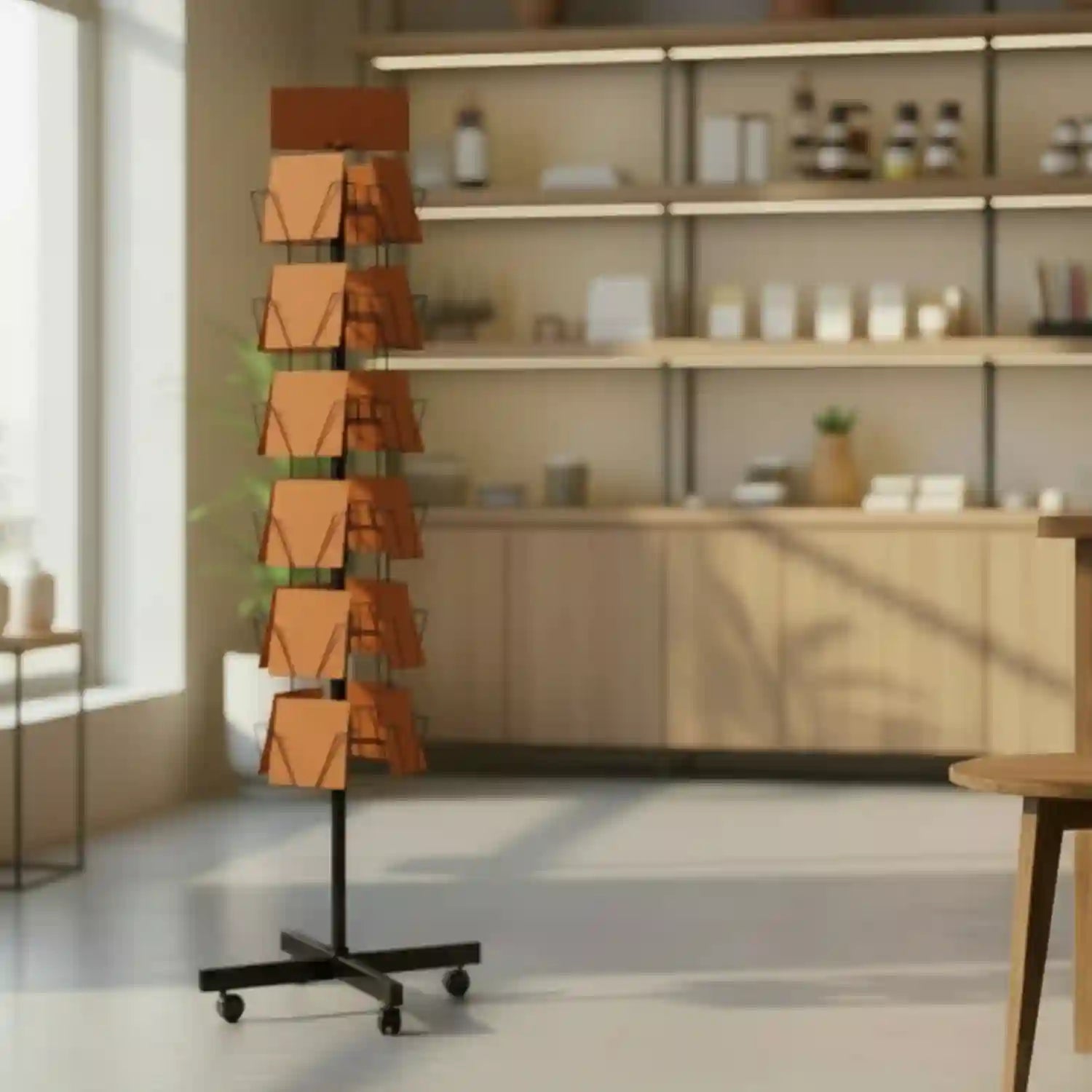 24 Pocket Floor Display Stand - 4 Sides of 6 Pockets